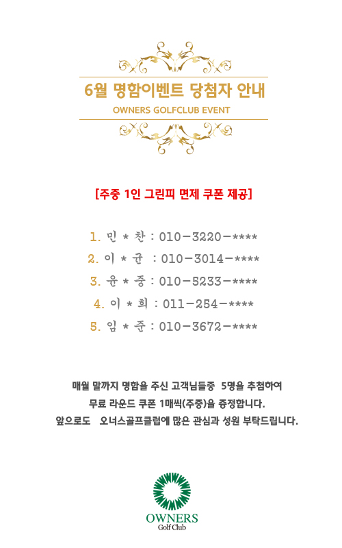 6월 명함 이벤트 당첨자 안내